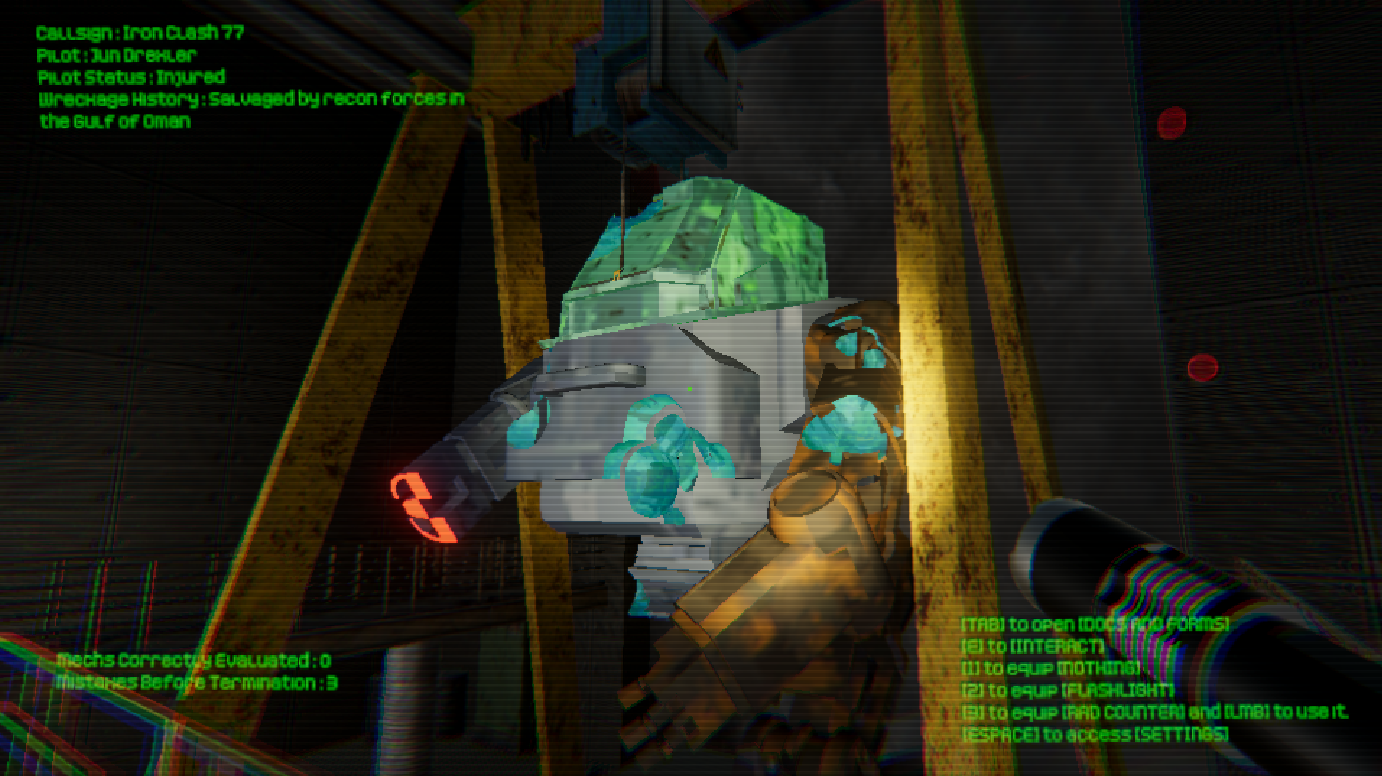 Step into the role of a military mechanic in this inspection simulator. You are tasked with evaluation damaged mechs recovered from active combat zones.